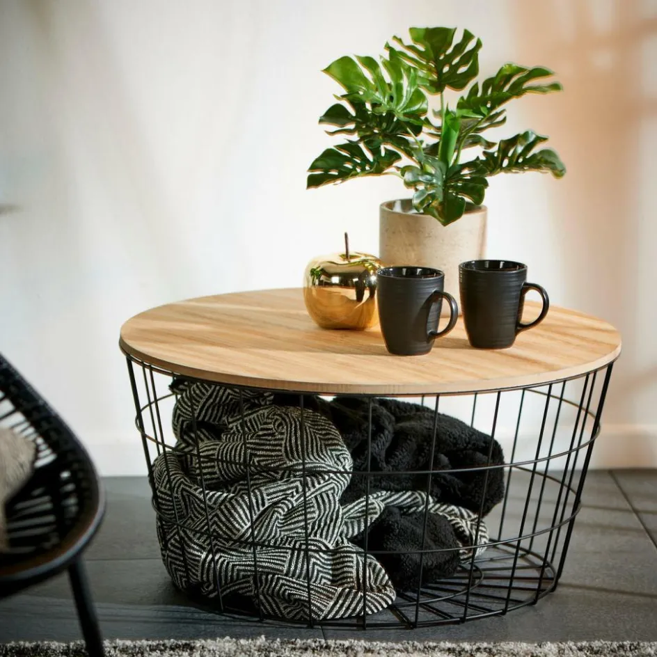 - Plateau : Panneau de fibres à densité moyenne (MDF) (Chine), Placage de paulownia, Panier : Acier, Laque en poudre