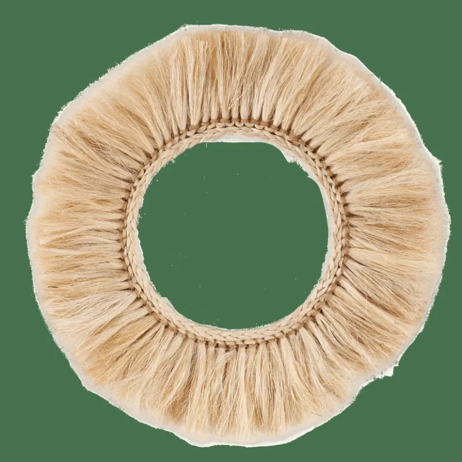 - Raphia, corde, bois et verre miroir